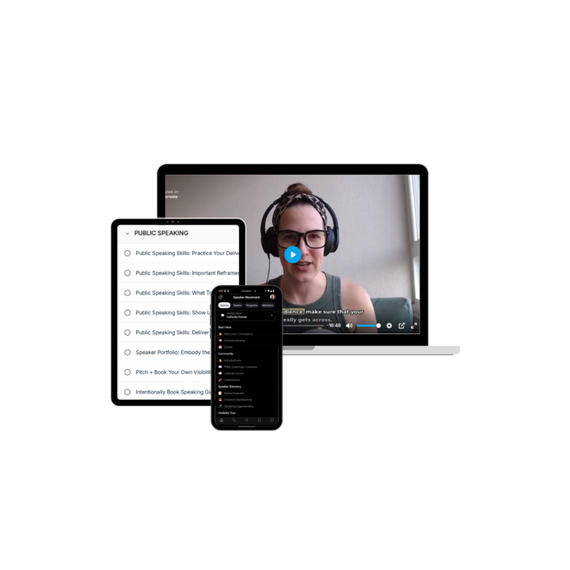 When you join the waitlist, you'll be added to Steph's email list where you'll receive next steps with respect to the program, lots of public speaking advice, and be able to access the free challenge itself (hosted on Circle).